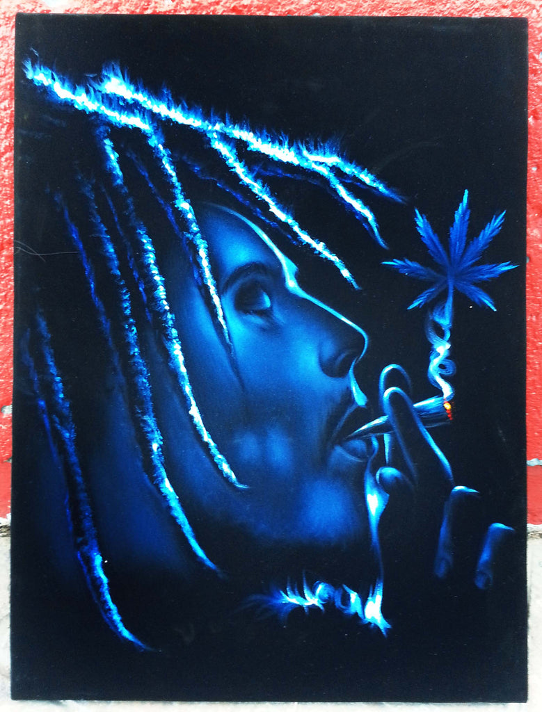 Bob Marley Smoking, Original Oil Painting on Black Velvet by Enrique Felix , "Felix" - #F130