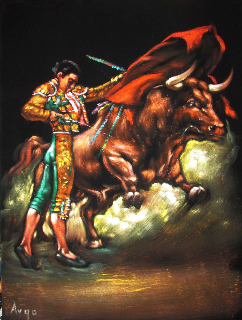 Torero Bull Fighter, Original Oil Painting on Black Velvet by Alfredo Rodriguez "ARGO" - #A122
